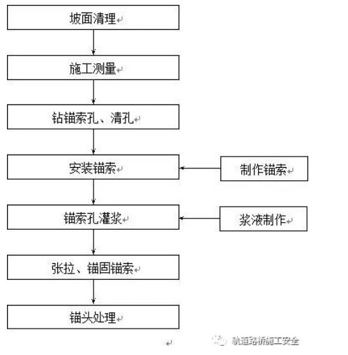 2.外业技术准备1)依据所提交项目物资部的材料计划单中的材料项目和数量,到达现场,并经试验、监理抽检和平检合格。2)泥浆弃运和排放的地点已经落实,手续已经完备。3)张拉的设备(千斤顶和油表)到达现场并已经标定完成。4)现场施工到锚索锚固线以下0.5米位置,具备锚索施工条件5)施工场地征地应完成,场地应平整。生活、生产房屋应修建完成,生活、办公设施应配齐,并能够满足主要管理、技术人员进场生活、办公需要。