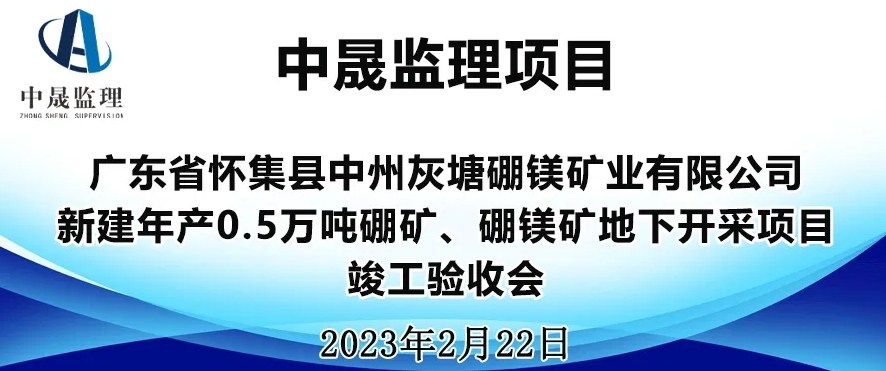 2023年2月22日,中晟监理项目广东省怀集县中州灰塘硼镁矿业有限公司新建年产0.5万吨硼矿、硼镁矿地下开采项目工程进行了竣工验收。